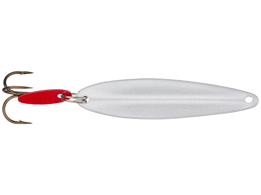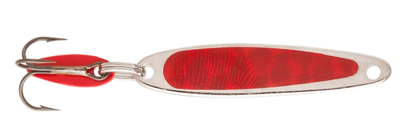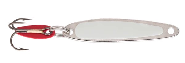 The Bay de Noc Swedish Pimple is a classic jigging spoon with a simple, yet reliable design. An absolutely superb jigging lure, this type of spoon has been widely used in Sweden for over 100 years with exceptional results on both fresh and salt-water fish year round. Their proven multi-species producer; shown to reliably catch walleye, trout, Coho salmon, northern pike, bass, panfish and many saltwater species. Spoons come pre-rigged with a colored flapper for extra action and a super-sharp treble. All Bay de Noc lures are proudly made in America with dedicated craftsmanship put into each and every lure. Available in 8 colors and 3 sizes.