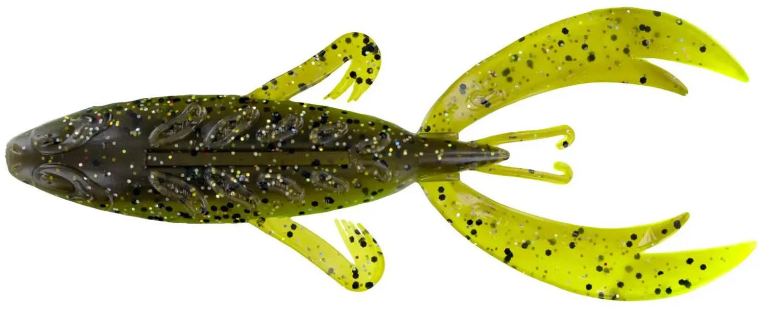 - Like soft plastic frog, but designed for more subsurface applications like lipping, pitching, Carolina rigging, or even as a jig trailer.