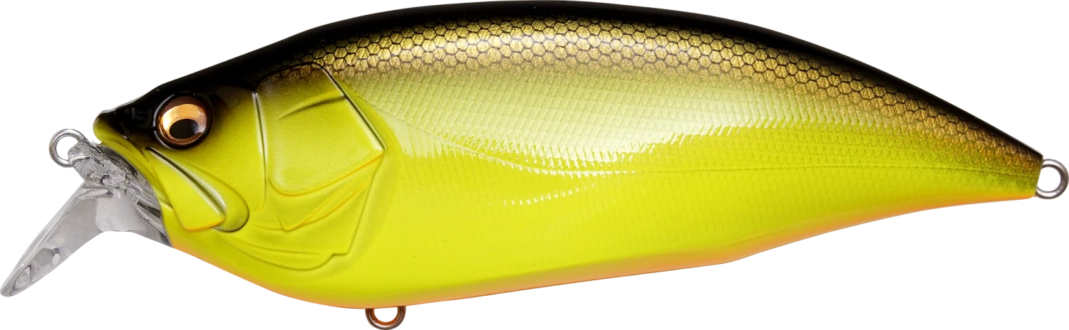The Megabass Big-M 2.0 is the newest and shallowest running member of the Megabass’ Big-M Series of oversized, flat-sided crankbaits. Measuring 5 inches and weighing 2 ounces, this a big crankbait designed for catching big bass in the 6 foot depth range. It uses a unique scoop-like bill design that channels water to produce a hard rolling and flashing action, making the most of its flat-sided body design.