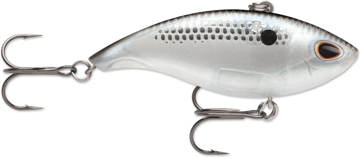 The Storm Arashi Vibe is a 2 3/4 inch, 9/16 ounce lipless crankbait designed for when the bite turns off. You can generate subtle vibration and sound at incredibly slow speeds with this bait using either a steady retrieve or a lift-fall technique. Soft knock rattle provides a single cadence sound that attracts without overpowering. In addition, this lure features a self-tuning line tie with a free-moving design that allows the lure to start action easily and vibrate at slow speeds. Rotated hook hangers also nest the hooks close to the body for improved action, preventing hangups, even with the larger hooks. Available in 14 colors.
